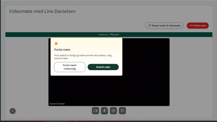 - Når du har trykket avslutt møte, avsluttes det også for brukeren, ingen kan bli værende i møtet.