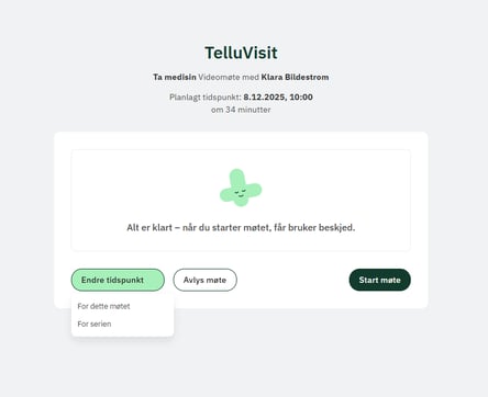 Både rollen responsoperatør og tjenesteansvarlig kan redigere og avlyse videomøter i TelluVisit.